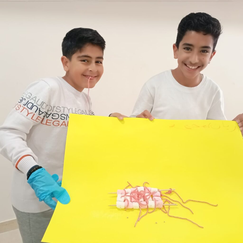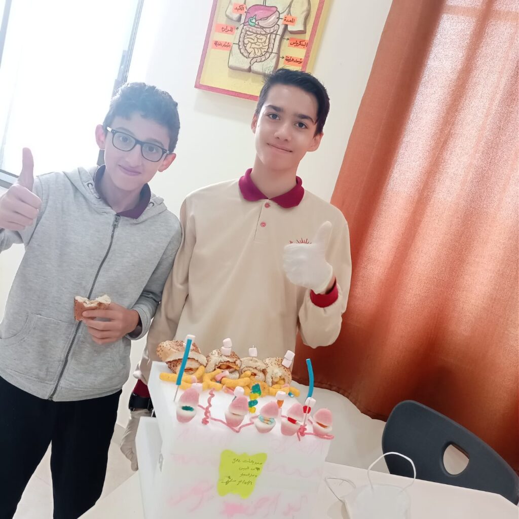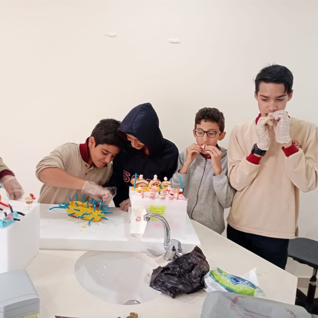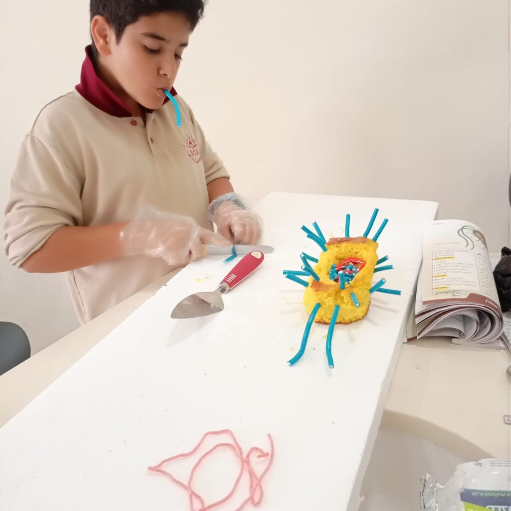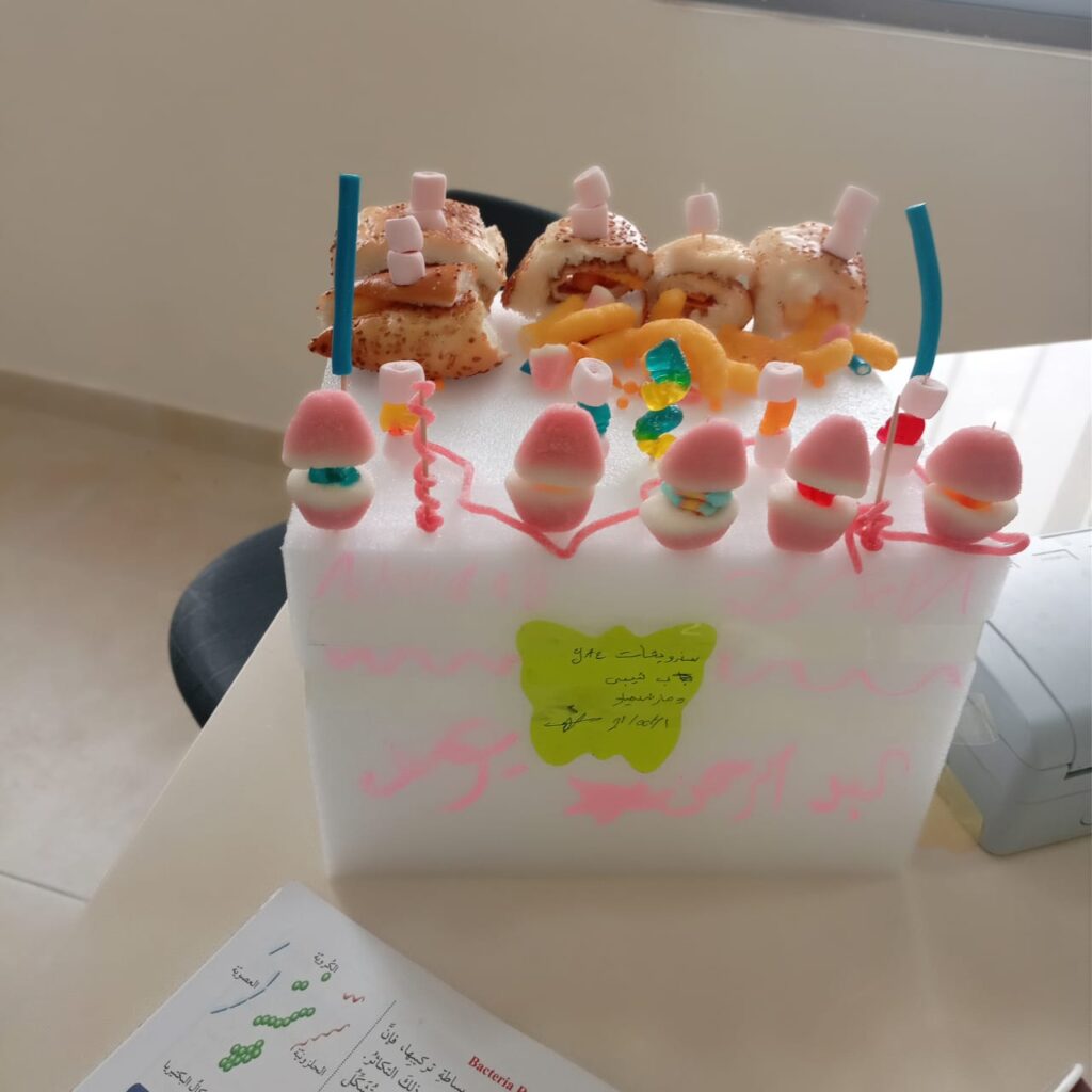 هل سمعتم بخلية بكتيرية تؤكل ؟! 🤔 في حصتنا العلوم اليوم 💥 قام طلاب الصف السابع بتصميم نموذج لخلية بكتيرية من المارشميلو والكاندي والكيك والخبز 😋 . ثم قام الطلاب بالتهام الخلية البكتيرية المصنوعة بعناية من السوس في نهاية الحصة 😍🍴