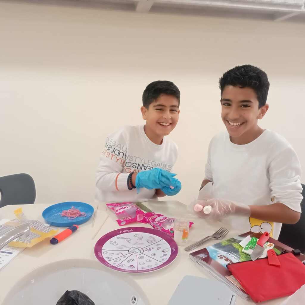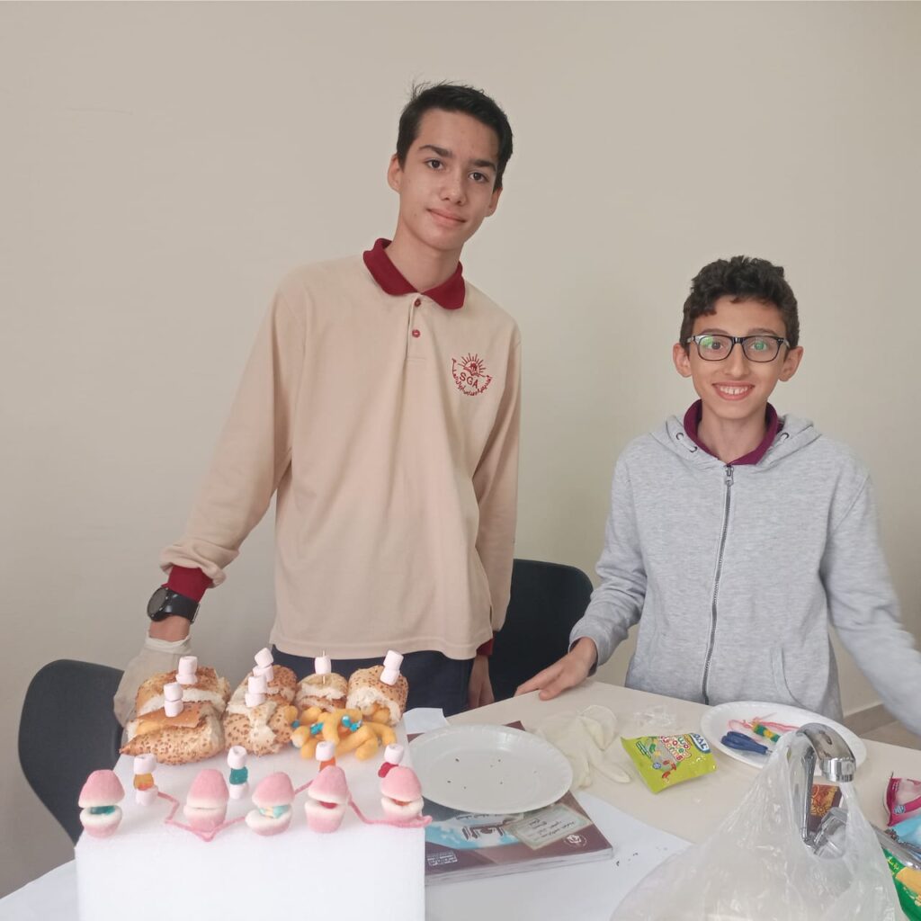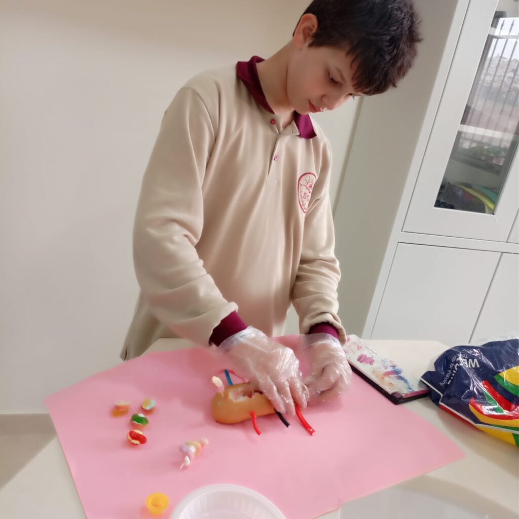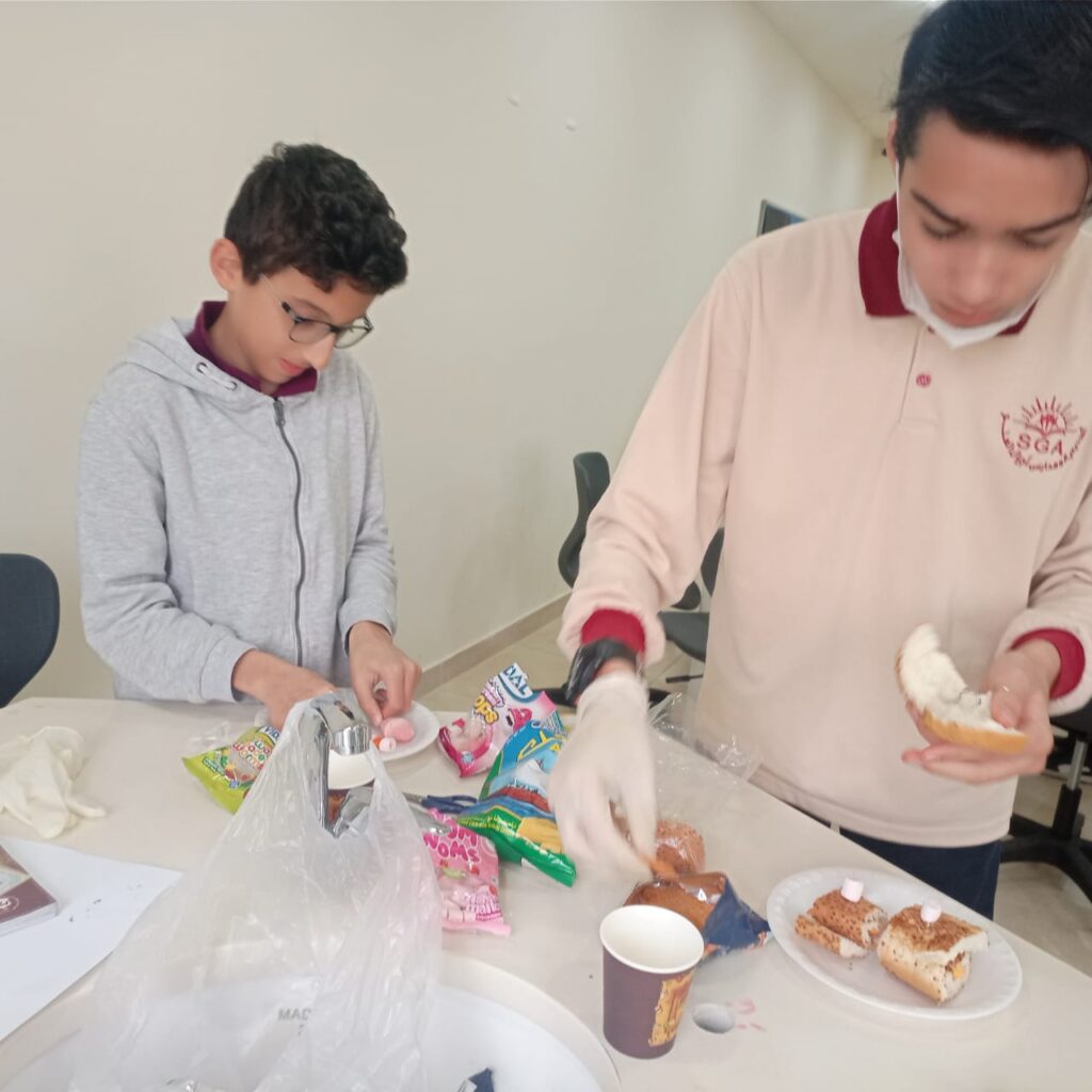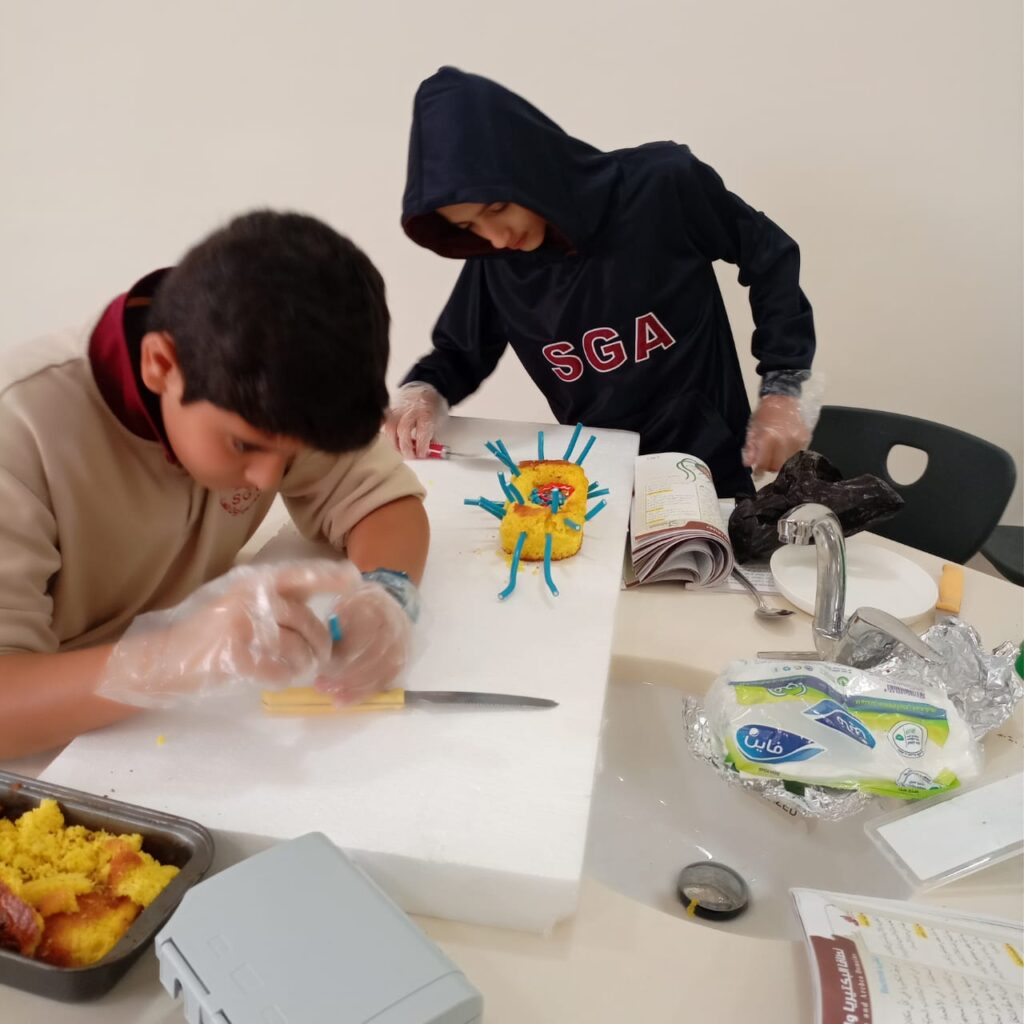 هل سمعتم بخلية بكتيرية تؤكل ؟! 🤔 في حصتنا العلوم اليوم 💥 قام طلاب الصف السابع بتصميم نموذج لخلية بكتيرية من المارشميلو والكاندي والكيك والخبز 😋 . ثم قام الطلاب بالتهام الخلية البكتيرية المصنوعة بعناية من السوس في نهاية الحصة 😍🍴