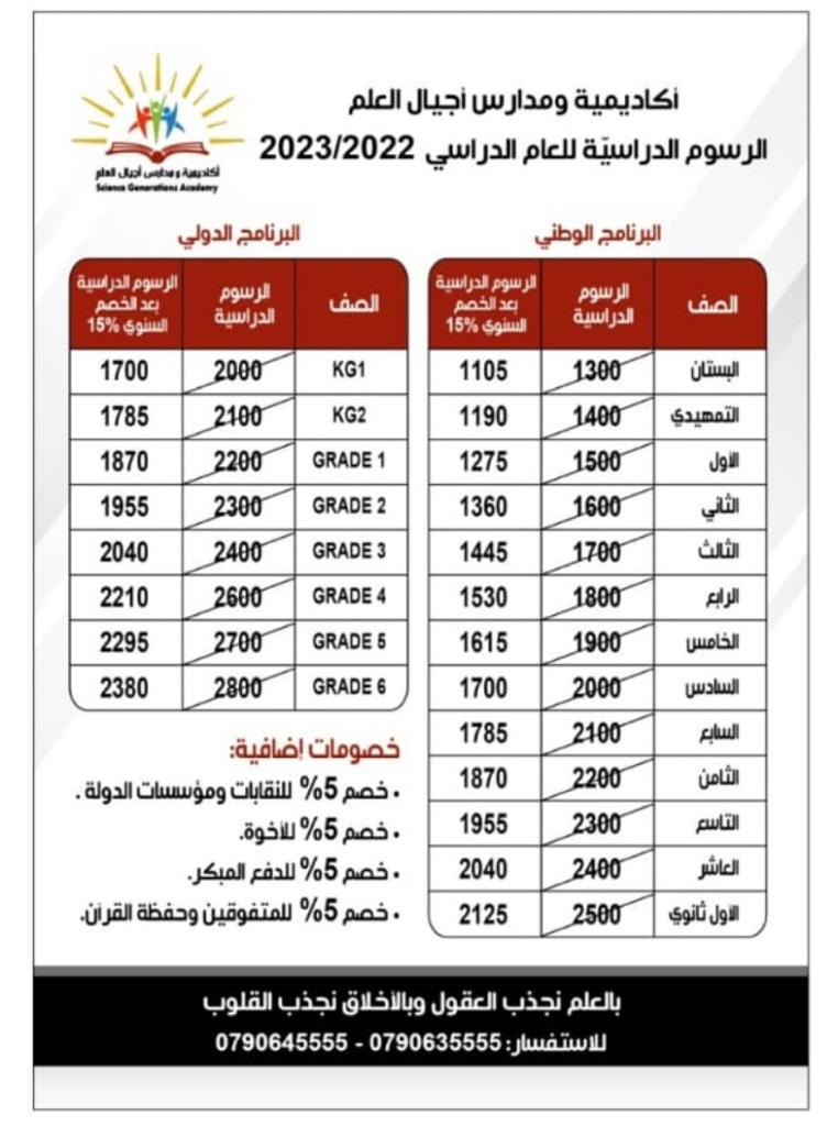الرّسوم الدّراسيّة للعام الدّراسي 2023/2022